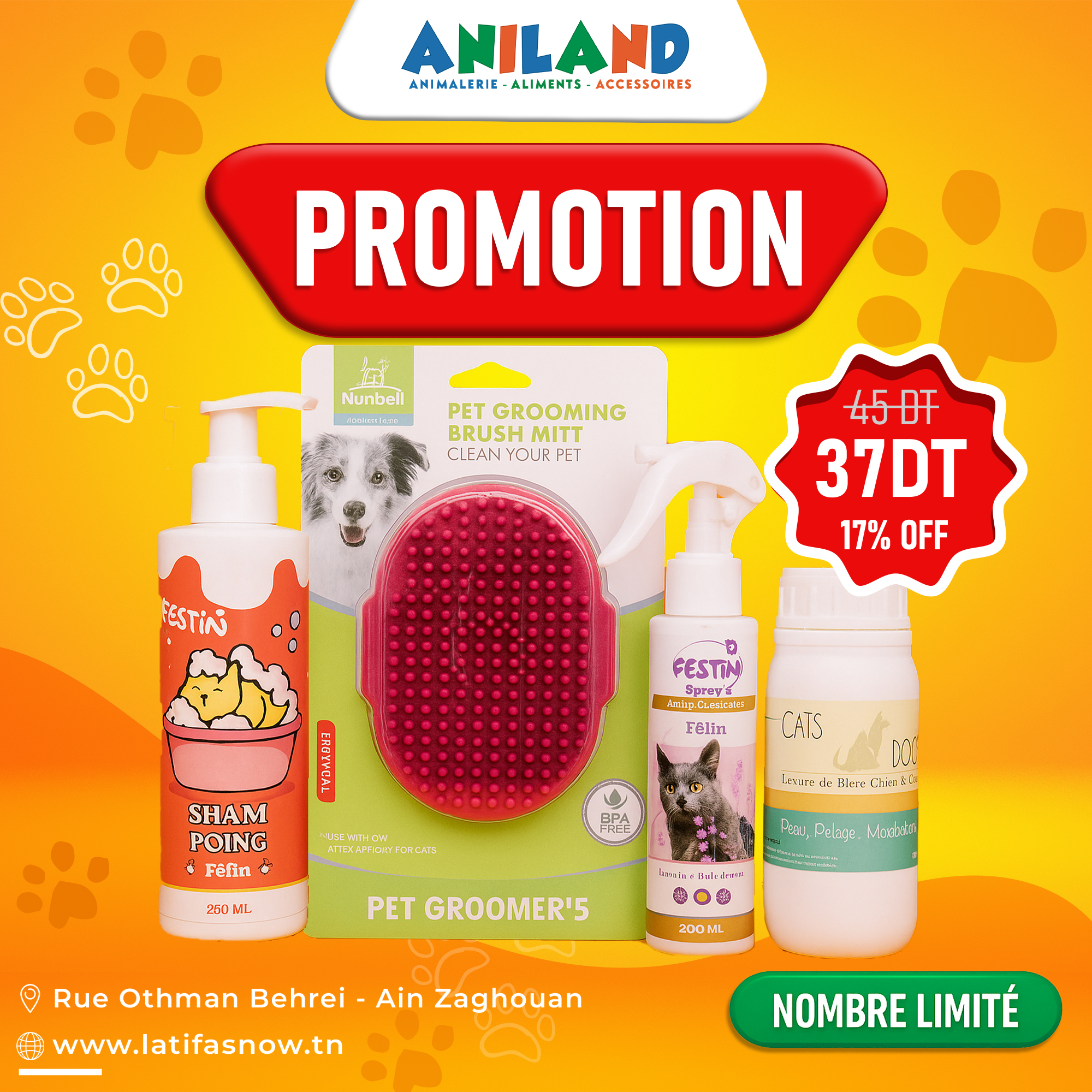 You're viewing: Pack Grooming & Care Félin Chat Le prix initial était : د.ت 45,000.Le prix actuel est : د.ت 37,000.